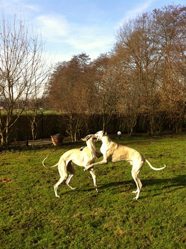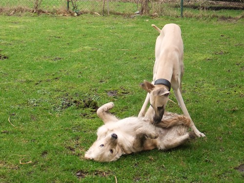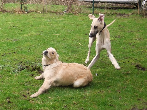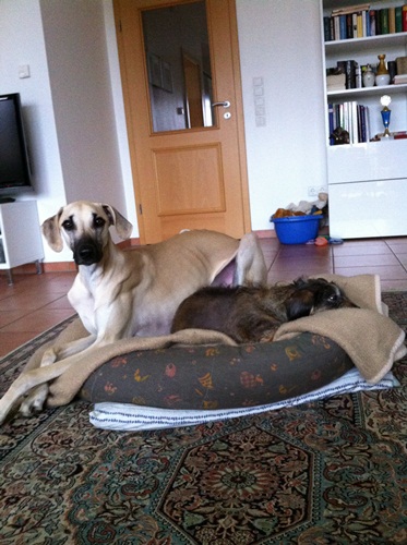 As Samir mit dem Welpen der Nachbarn - man muss sich ja mal richtig kennenlernen . . . |