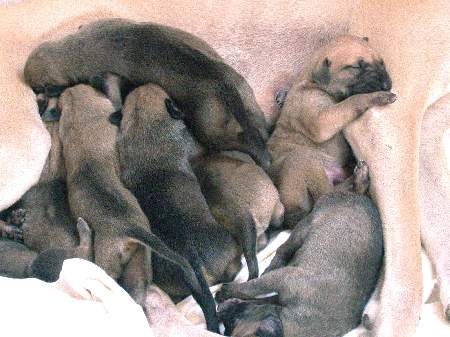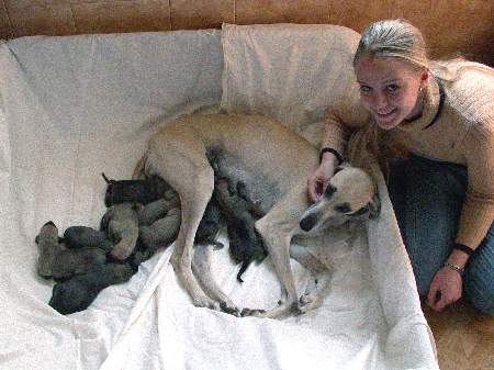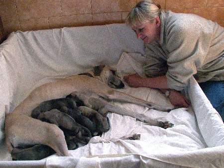 Christiane und Lena haben am Sonntag den 14.03.2004 die kleinen K-Welpen zum ersten mal besucht. Die Babys sind da gerade 5 Tage alt! Sema-Nur hat uns Menschen einen ganzen Nachmittag bei Ihren Welpen geduldet und uns an Ihrem Glück teilhaben lassen