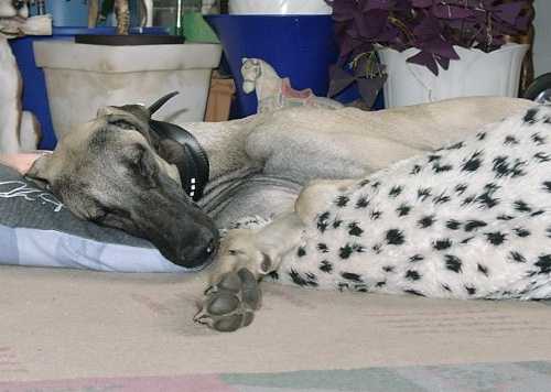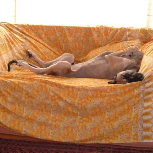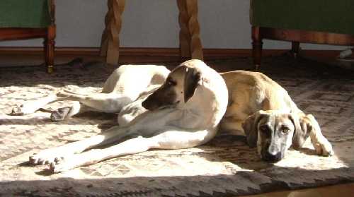 Und so schläft jetzt Kurosch im Bayrischen Wald. Er lebt dort mit einem Jagdhund und einem Sloughi zusammen ach ja, und mit Brigitte und Alois (die sind bestimmt die besten Ohrenkrauler der Welt, gell !)
