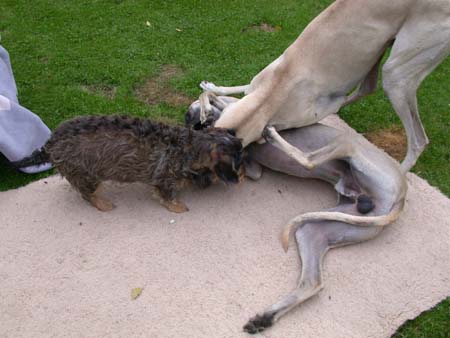Jule leidet schon seit frühester Kindheit unter Epilepsie und muss jeden Tag zwei Tabletten schlucken - schön in Leberwurst eingepackt ist das kein Problem - und sie hat auch schon eine gräßere OP hinter sich (jetzt sind es sogar schon zwei!). Da hat zwar die Figur ein wenig gelitten aber das kann doch einen Dackel nicht erschüttern!