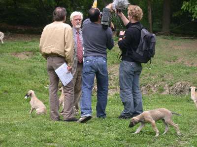 Das Kamerateam bei den Aufnahmen mit Lena, dem K-Wurf und unserem Züchter Eckhardt Schritt.
