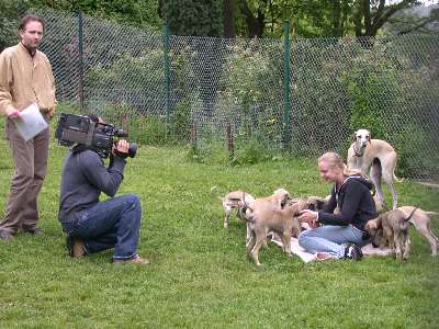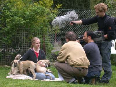 Am 12. Mai waren nicht nur Christiane und Lena in Hünstetten, ein Fernsehteam drehte einen Film  über den K-Wurf im Zwinger Schuru-esch-Schams mit Sema-Nur und Xenos, und hier die Darsteller  . . .