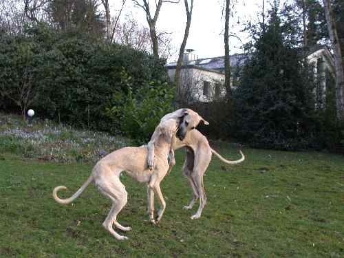 Da konnten die 5 Sloughis im Garten so richtig toben . . .  |