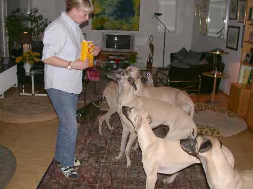 und dann in der Wohnung weiterspielen . . . aber fĂźr ein Leckerchen machen dann alle wieder Sitz |